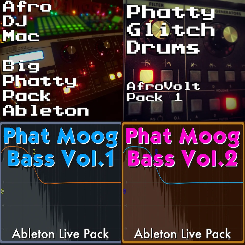 Over the years I've done a lot of work with my various Moog synths and Ableton Live. I've created tons of presets ranging from deep basses, big leads, glitchy percussion, and lush pads. I'm currently offering a special Moog Bundle. You get my Big Phatty, Moog Glitch Drums, Phat Moog Bass Vol. 1 and Vol. 2 in a special bundle for a fraction of the normal price. These are some of my favorite and most used sounds. I'm sure you'll love them or I'll give you your money back!